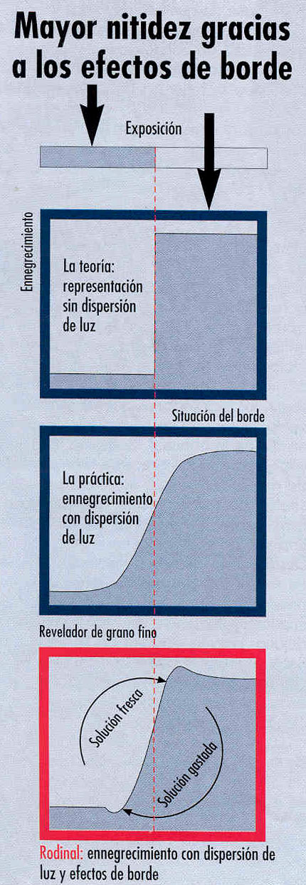 Veamos un gráfico del efecto de borde, es decir, la Acutancia generada por el revelador Rodinal(R09 One Shot).