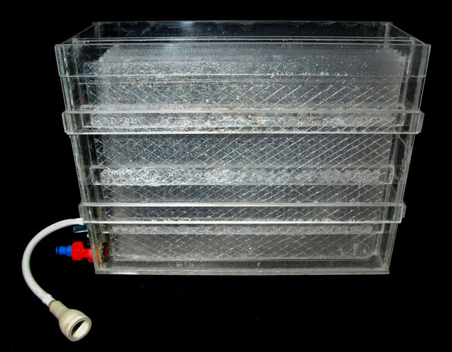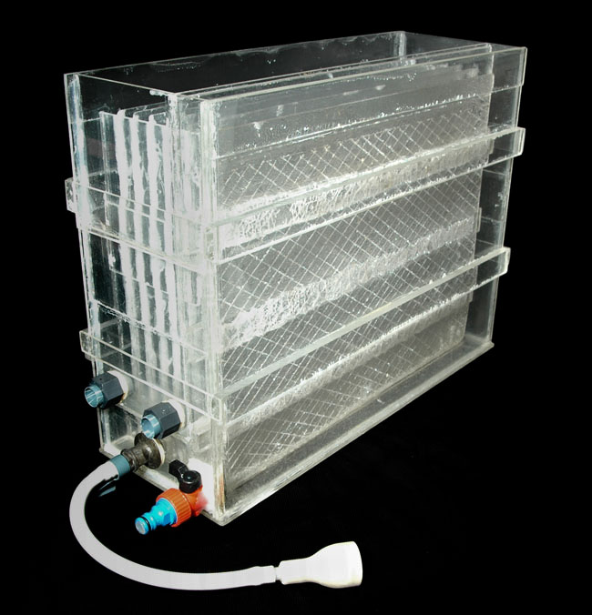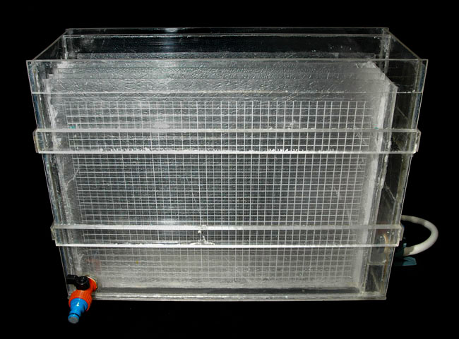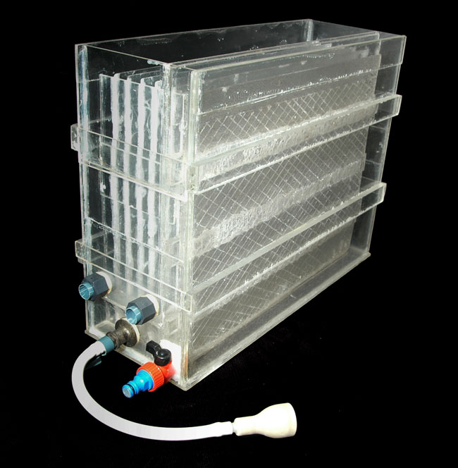 Como comentaba más arriba, mi lavadora está basada en la lavadora Nova y está construida en metacrilato de 3mm. de grosor; la he construido para lavar copias de hasta un tamaño de 30 X 40 cm.