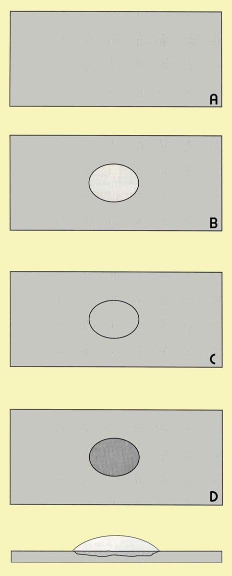 B/ Momento en el que se deposita la gota de revelador en la emulsión; comenzamos a cronometrar el tiempo.